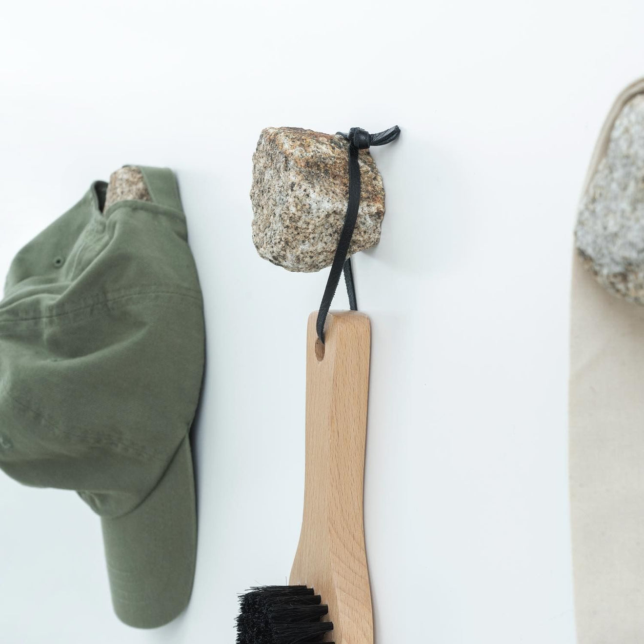 何も掛けていないときも自然石の豊かな表情を感じることができます。付属の専用金具で簡単に壁面に取り付けることができます